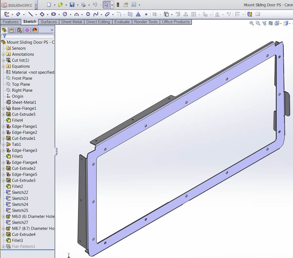 The biggest improvement in the system in both design, manufacturability and installation came when we introduced SolidWorks and the use of Sheet Metal Tool Set. Although the mounts are not complicated in their design the real trick is in there attachment (& in measuring them up!)