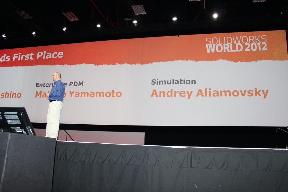 About "shutting down" US Military autonomous vehicles! ?? ?? Designing in SolidWorks and producing models & prototypes in incredible short times.?? And suggesting that when you see GI Joe – Retaliation there might just be a a Howe & Howe product involved! Fielder Hiss acknowledges the Beta Tester Award Winners For SolidWorks, Enterprise PDM and Simulation Fielder introduces Ben Kaufman – CEO – Quirky Inc Ben talks Quicky Inc., Crowd Sourcing ideas and Designs Sharing acknowledgement and profits Thus ending the General Session Day 2