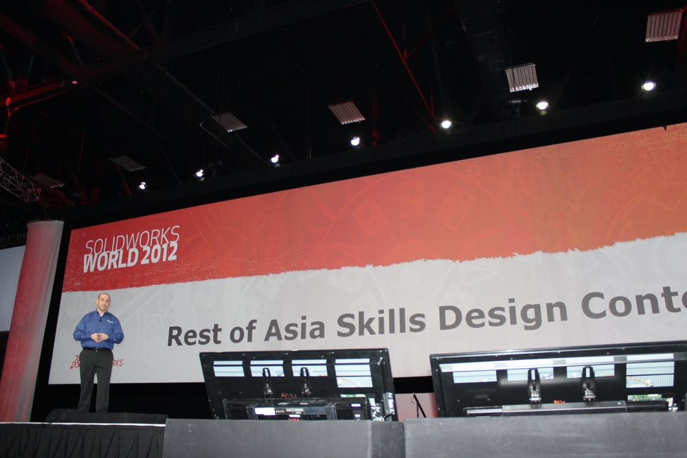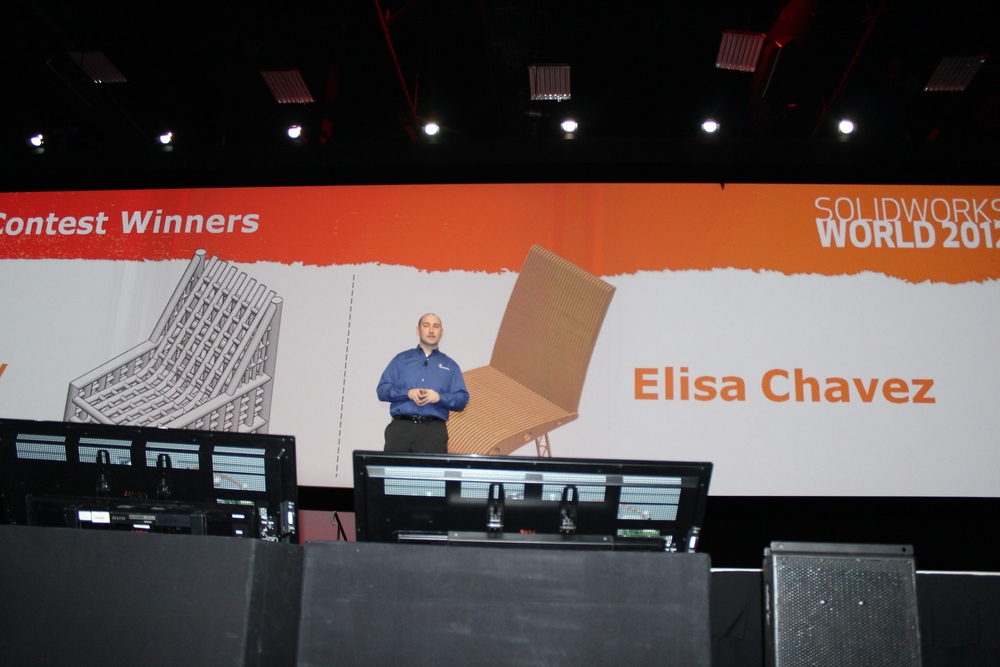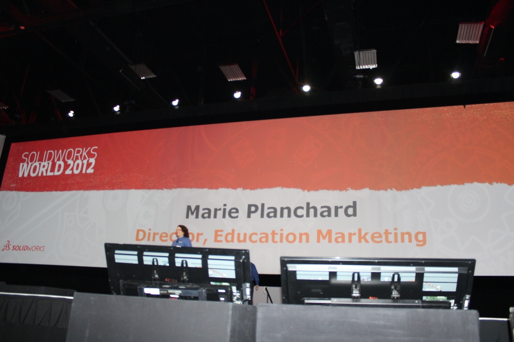 NAO – Resting comfortably before the Stage appearance Fielder Hiss takes the stage to introduce Mark Schneider Mark Schneider talks Model ManiaMark talks Models and Model Mania Champions Model Mania Customer Champions Model Mania Reseller Champions with Customer Champions Fielder talks SolidWorks Contests held throughout the year. First up Green Design for a Airline Chair Green Design Contest Winner Green Design Winners – Educational Section Green Design Winners – Educational Section Rest of Asia Skills Design Contest Rest of Asia Skills Design Contest Winners Fielder introduces Marie Planchard – Director, Education Marketing who talks and acknowledges SolidWorks eduction/ educators from around the World In General Session Day 3 – Part 2 Marie talks NAO with Al