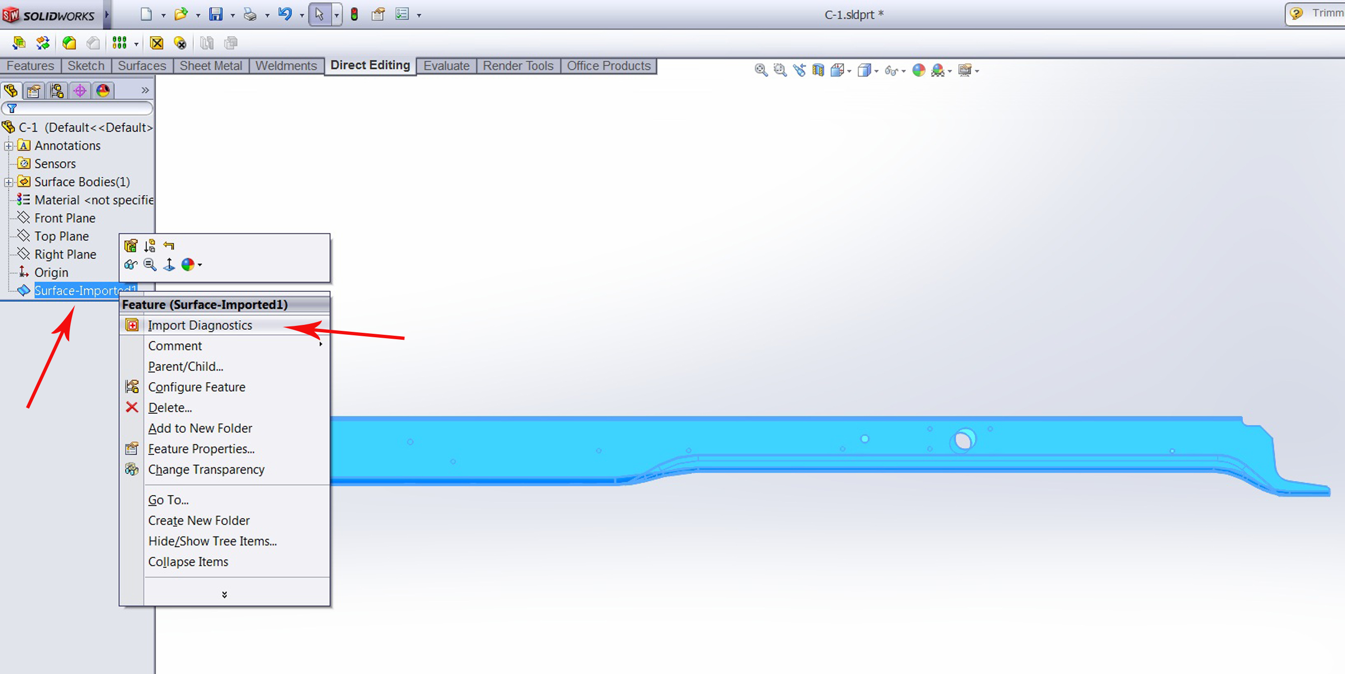 Which meant that there must be “gaps” or “faulty faces” that were in need of repair! So RMB (right mouse button) and Select Import Diagnostics