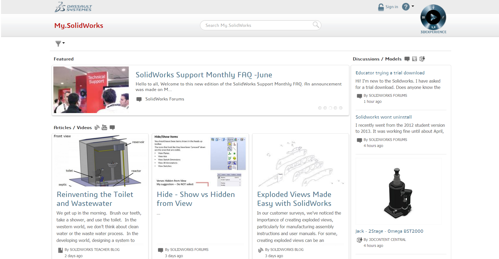 The Discussion column has now been renamed Discussion/ Model. This reflects the added content which is now brought in from 3D Content Central . If you upload a model into 3D Content Central it will display (after around 30 minutes) in the Discussion / Model Column.