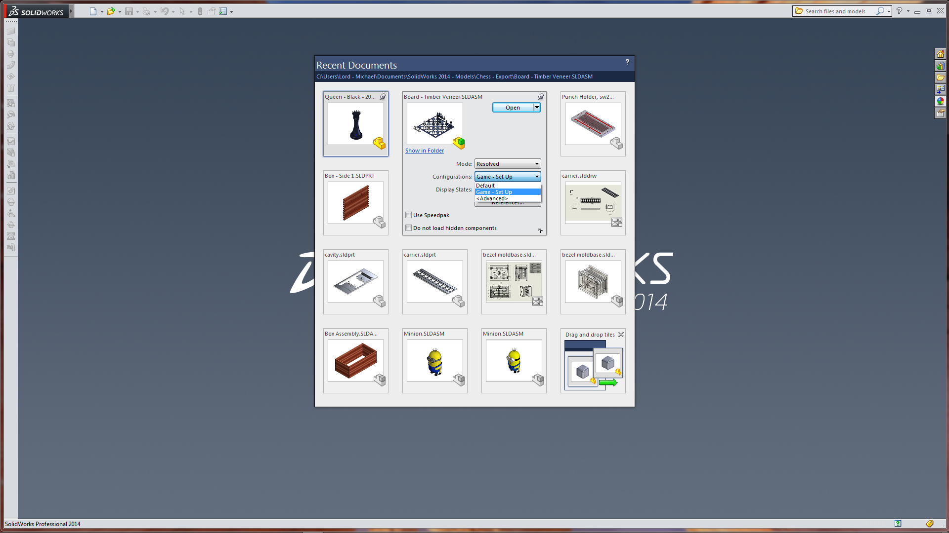 The ability to be able to Drag & Drop parts from the Recent Documents (into Assemblies) along with enhancement across all of SolidWorks 2014 on how configurations are selected (both in the Recent Documents & access via the Context Toolbar) will certainly make me reconsider how I work within Assemblies.