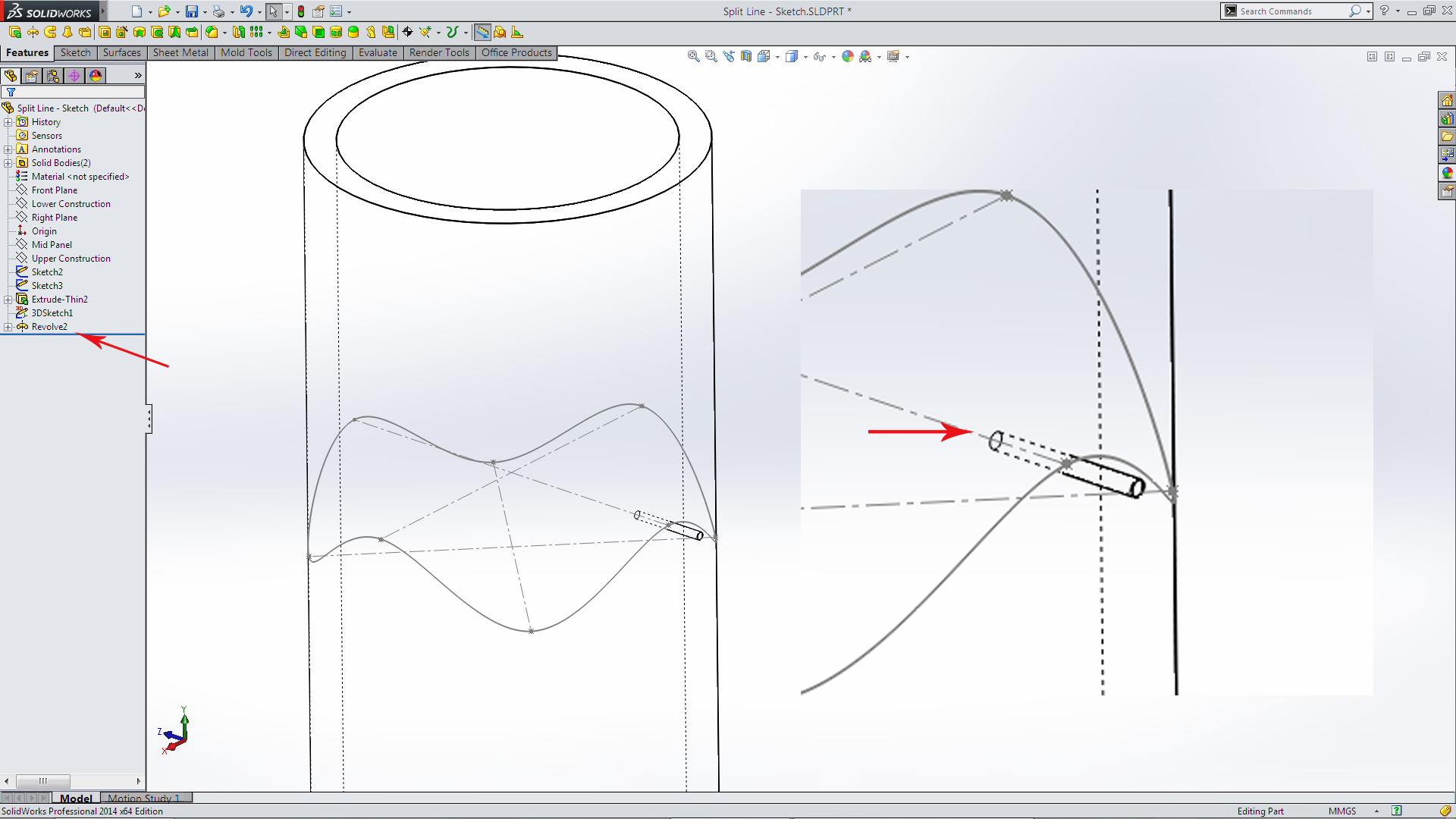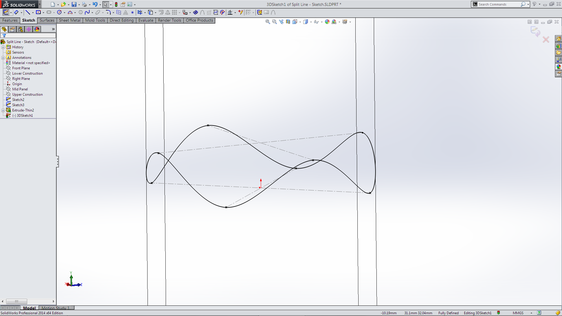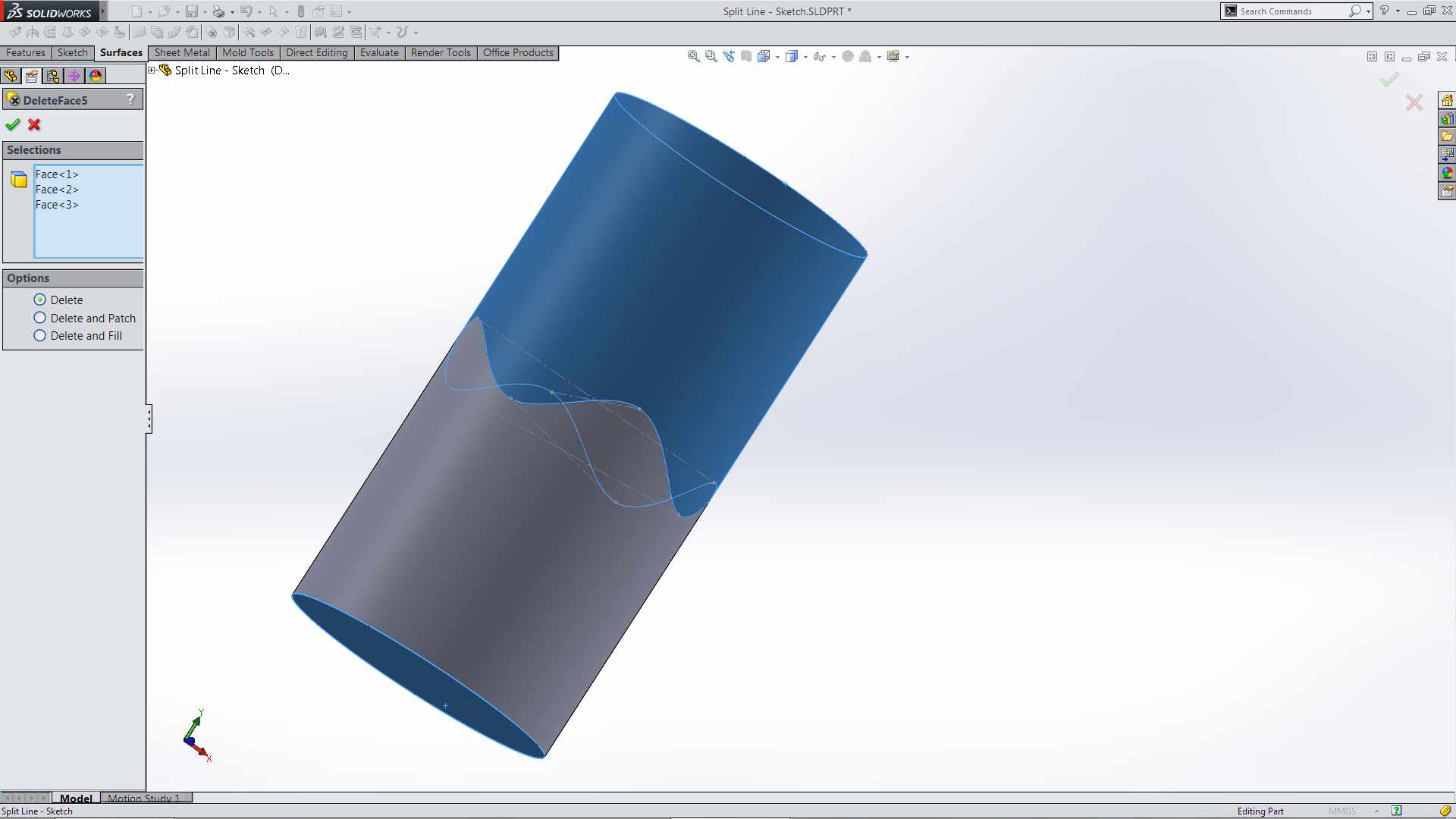At this stage I abandoned the manufacturing mode of thought and switch to the modelling mode of thought! Another tool I use rarely is Split Line which is found on the Curves tool bar