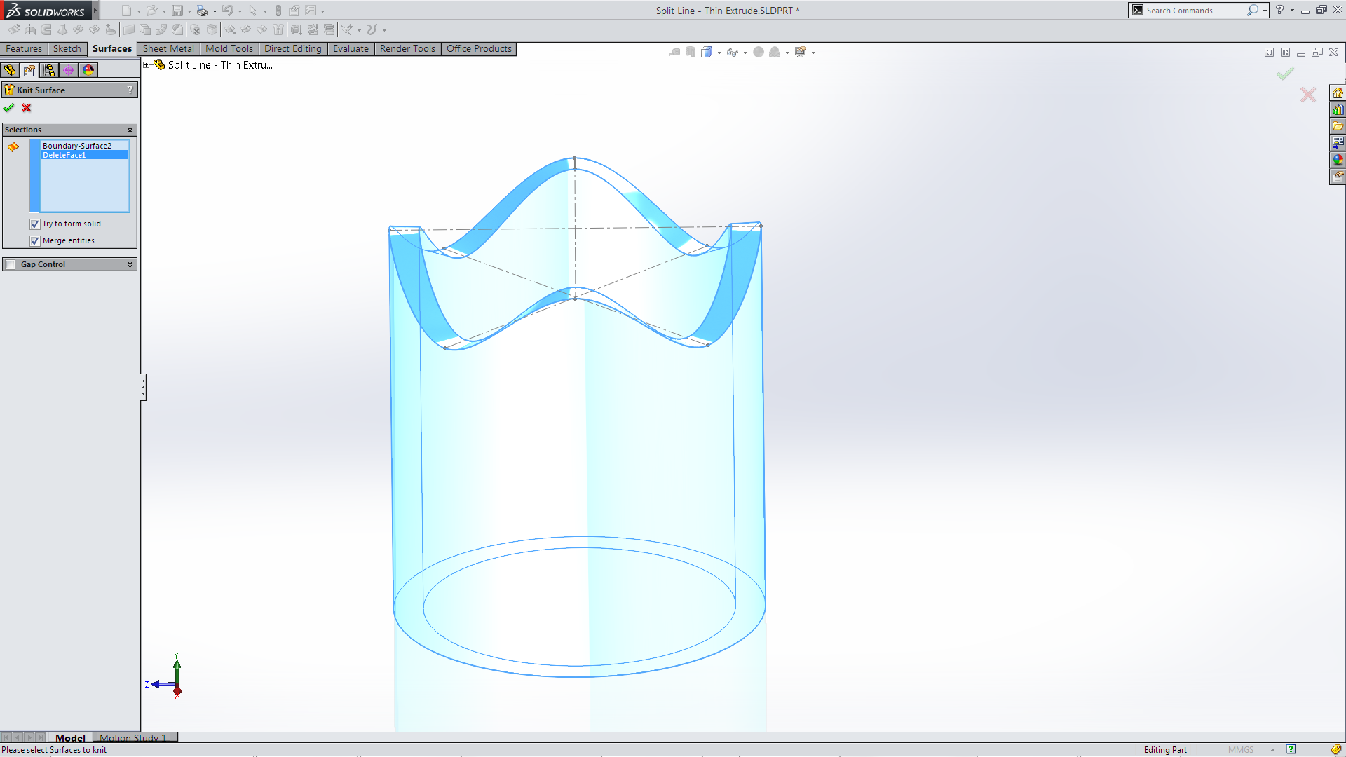 Which changes the Solid Body into a Surface Body! To “seal” back up I used the Boundary Surface (I could have used Surface Sweep)