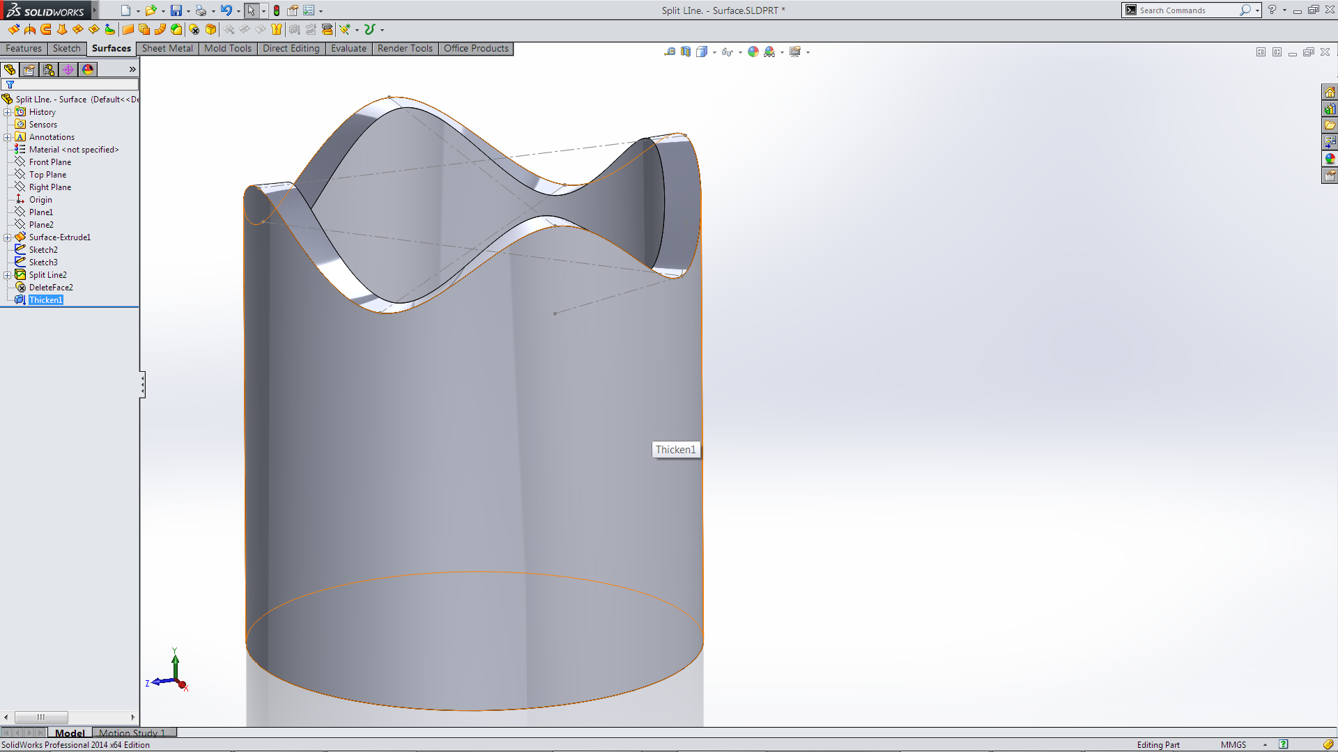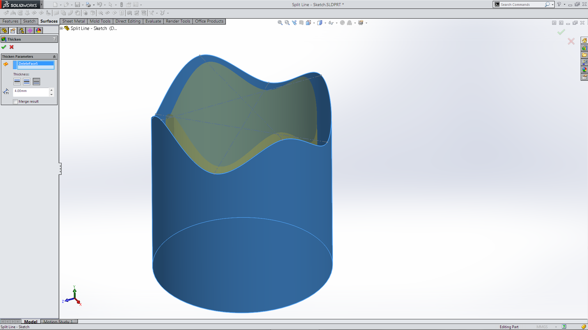 Which left the outer surface which I then could use the Thicken feature.
