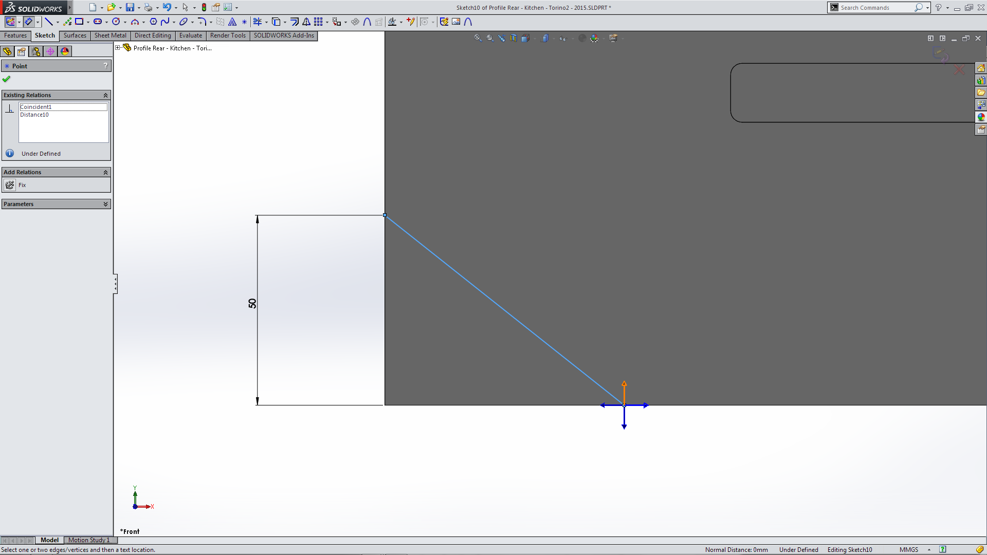 The preview dimension is then created between the line and the imaginary (in this case) vertical line. The dimension can then be set and accepted.