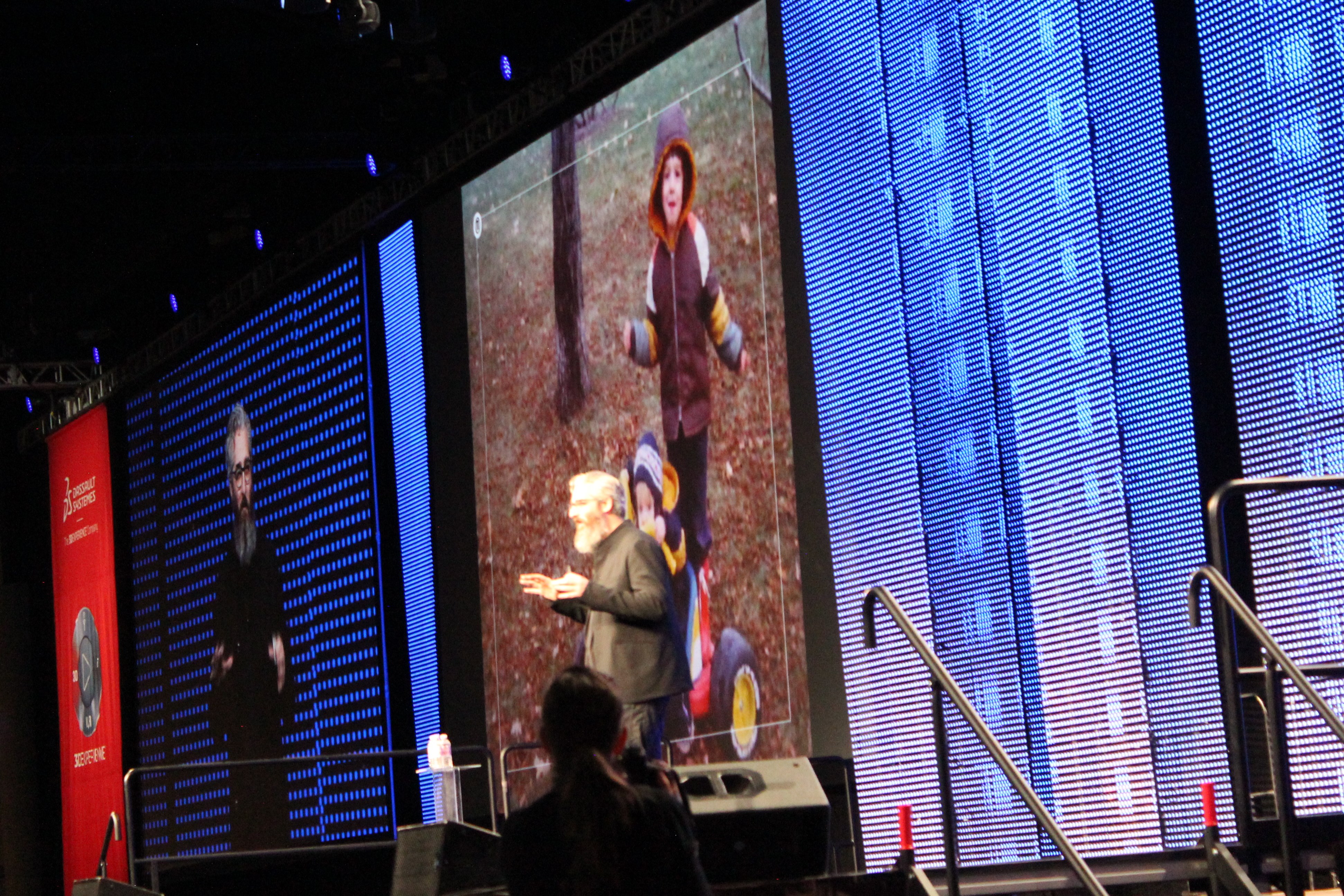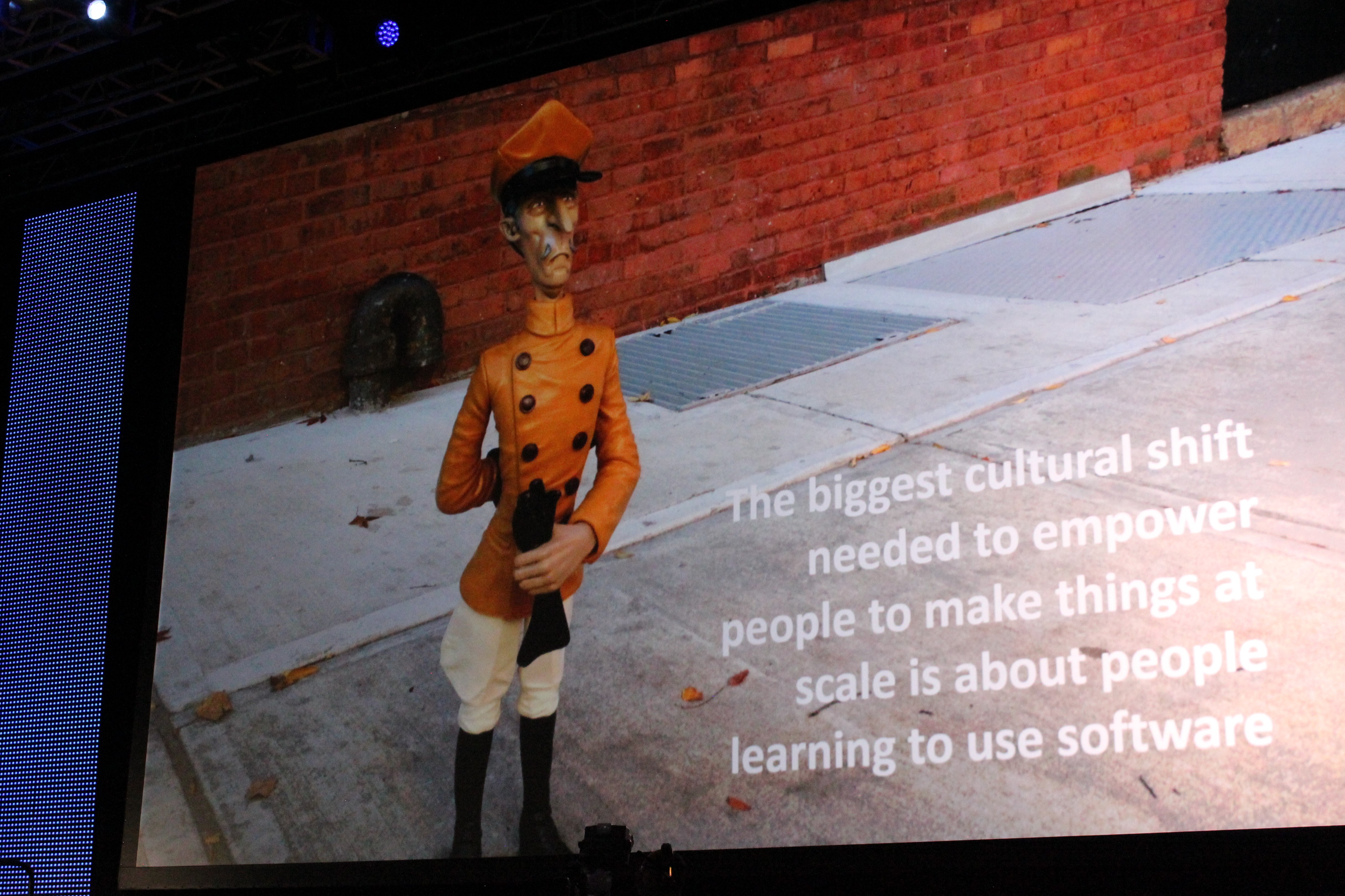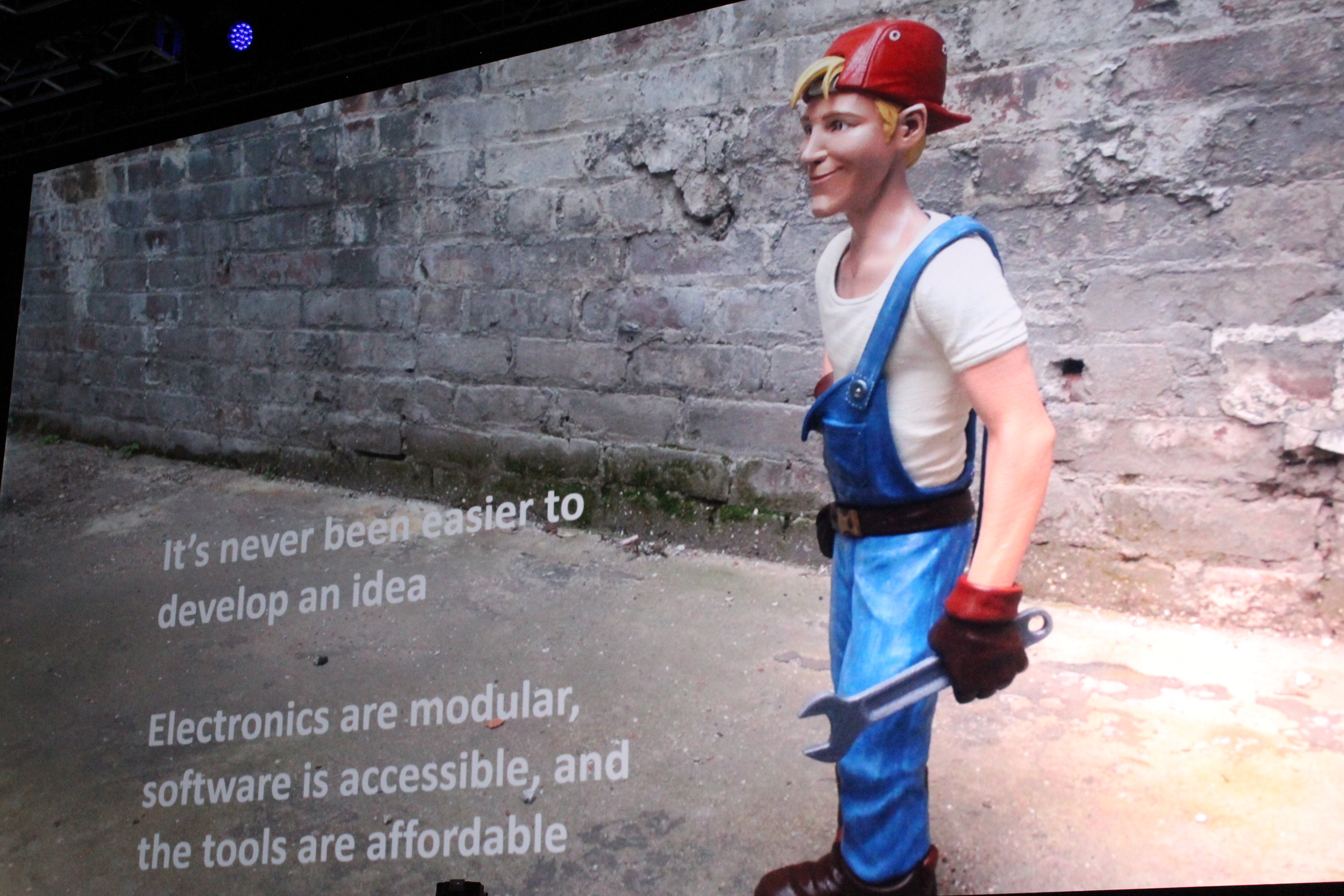 Gian Paolo re-enters the stage to introduce Bre Pettis