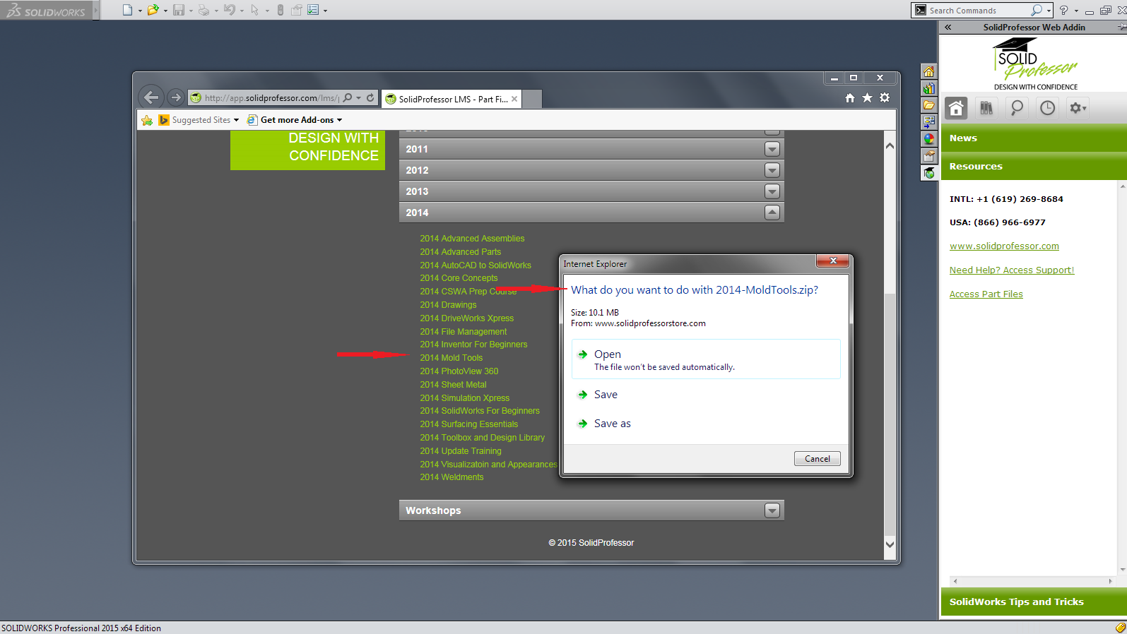 SolidProfessor Web PageOnce registered you are ready to  Log In and access the tutorials