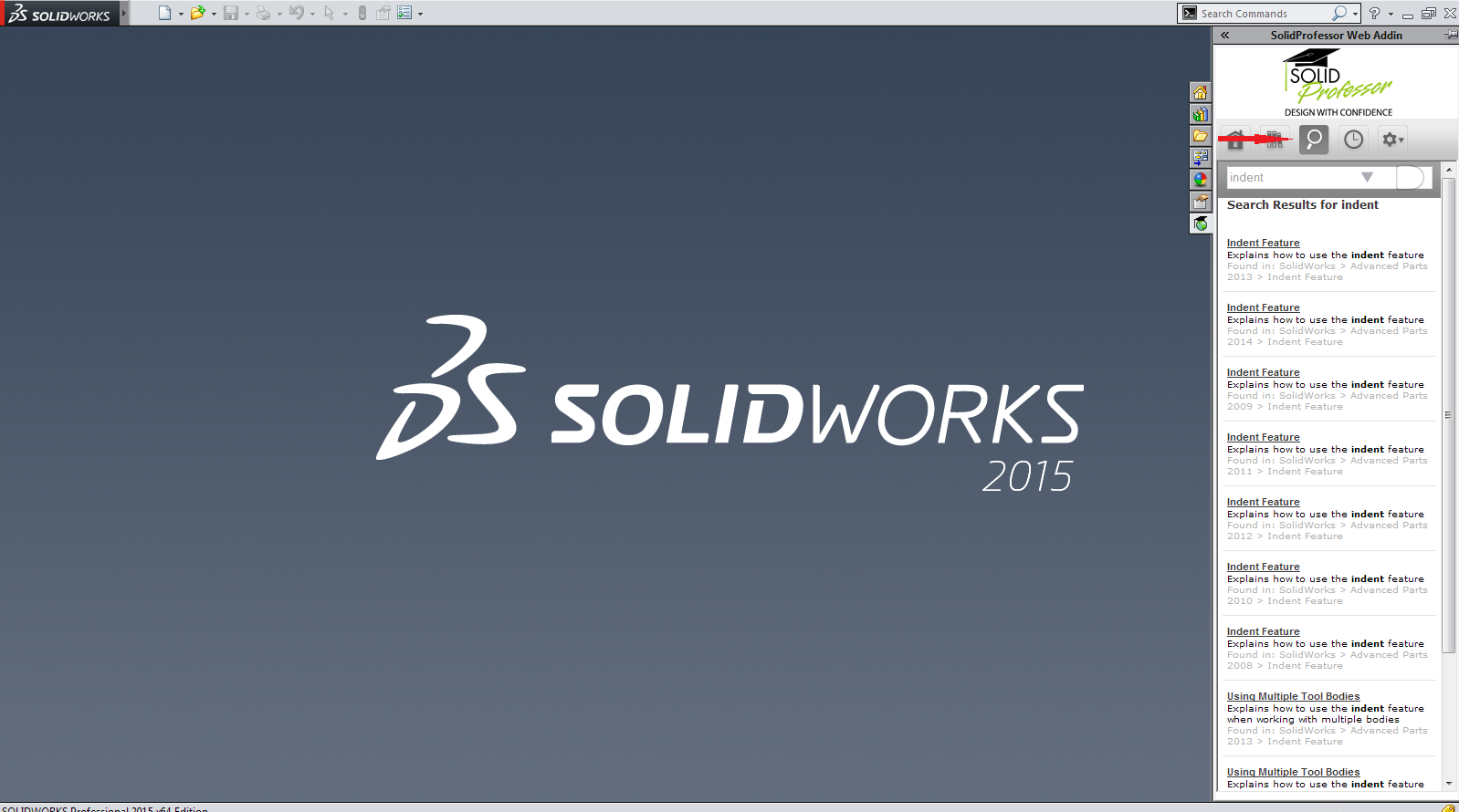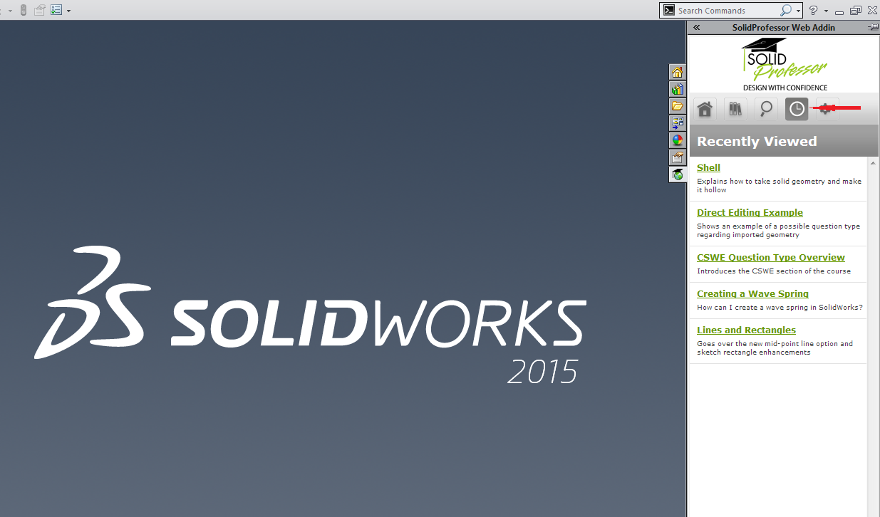 AddIn Set UpOpen SOLIDWORKS and the SolidProfessor Tab is added to the Task Pane