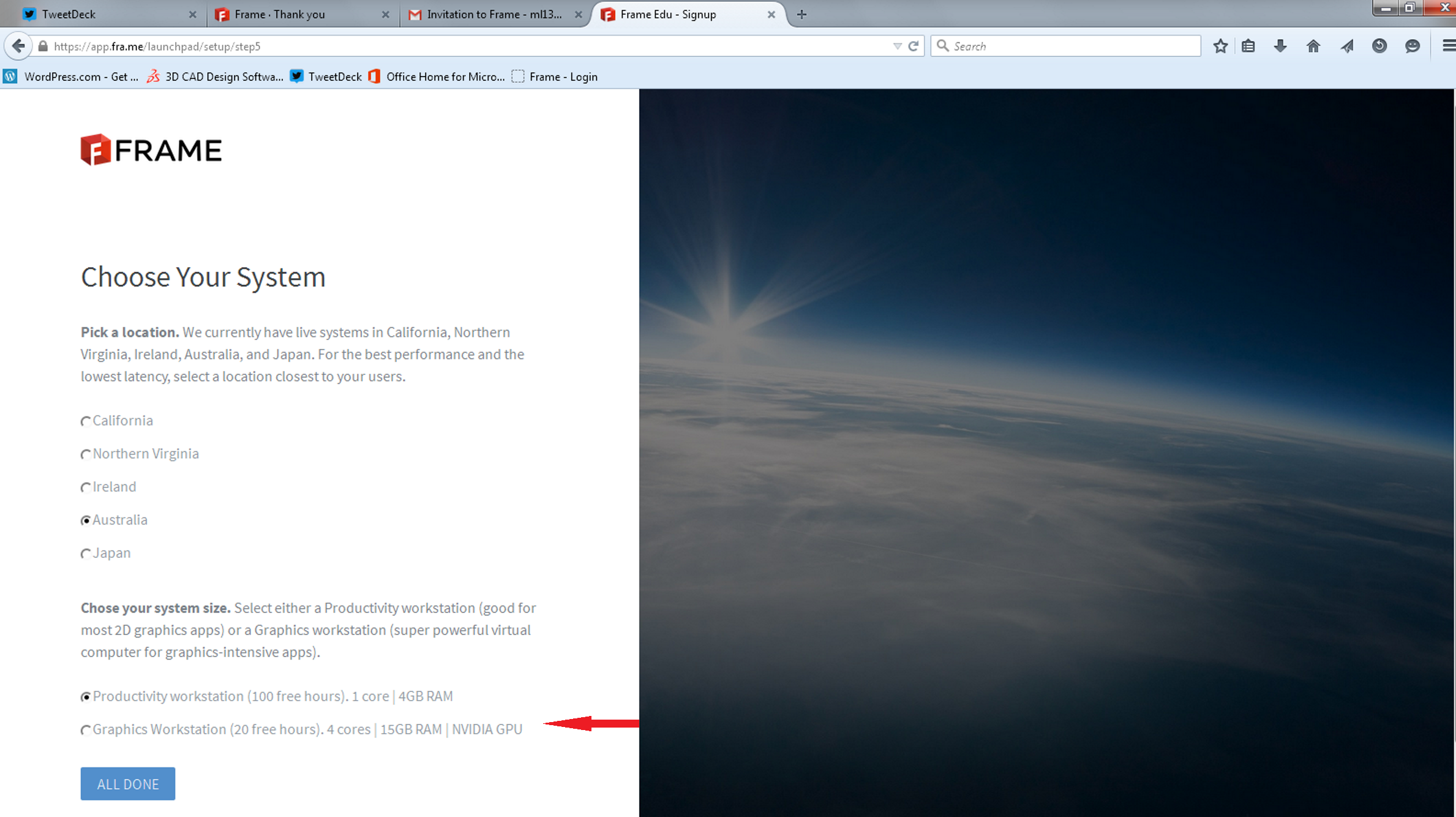 Once you have your invite and have signed in, the setup is straight forward. It is just a case of choosing the Server to suit. There is the “Production Server” for your average day to day programs or the “Graphics Server” for those requiring “CAD” performance.