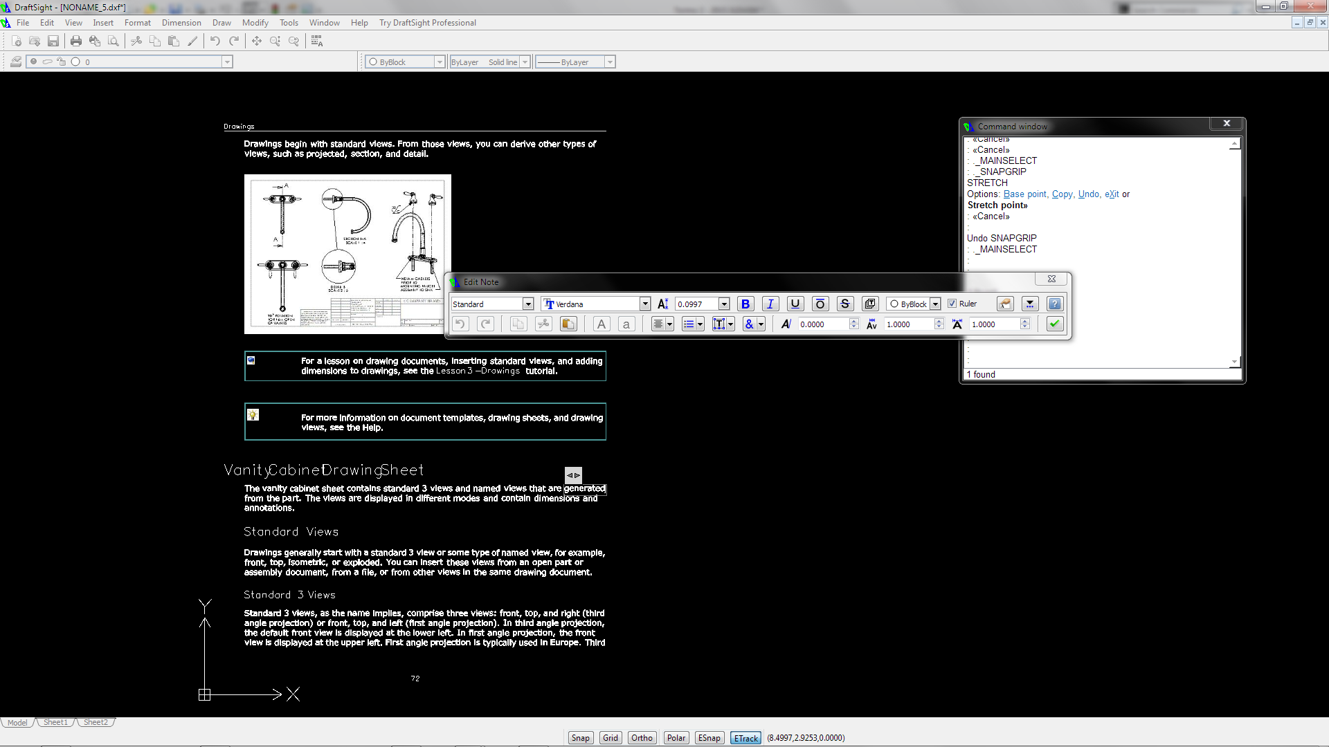 PDF Import is not limited to just drawings. It appears to import all PDF files. An area that I see, I would most likely make the most use of, is the ability to import text. I imported the “What’s New” in SOLIDWORKS document. When the page was exploded the text looked to break into paragraphs and/ or sentences. DraftSight would then edit them as it does with any text (created in DraftSight)
