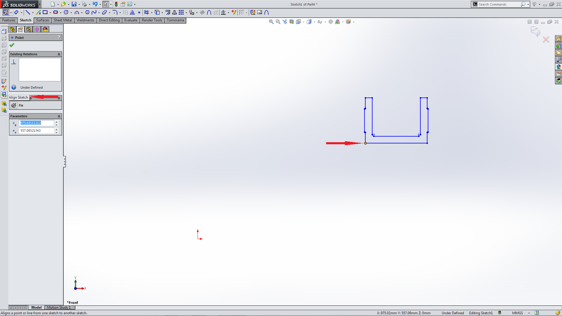 I did make a discovery when looking at these shortcuts. When you Paste the sketch into the part the 2D to 3D Tool bar opens on the Left. That once used to annoy me! I would select and turn off! If I want a Tool Bar I’ll turn it on! RIGHT. Well maybe wrong 😦 SOLIDWORKS is smarter than that (or me)! Because on that tool bar is a tool – Align Sketch. It you LMB a corner, of the sketch entities and select the Align Sketch tool the sketch jumps to the Origin.