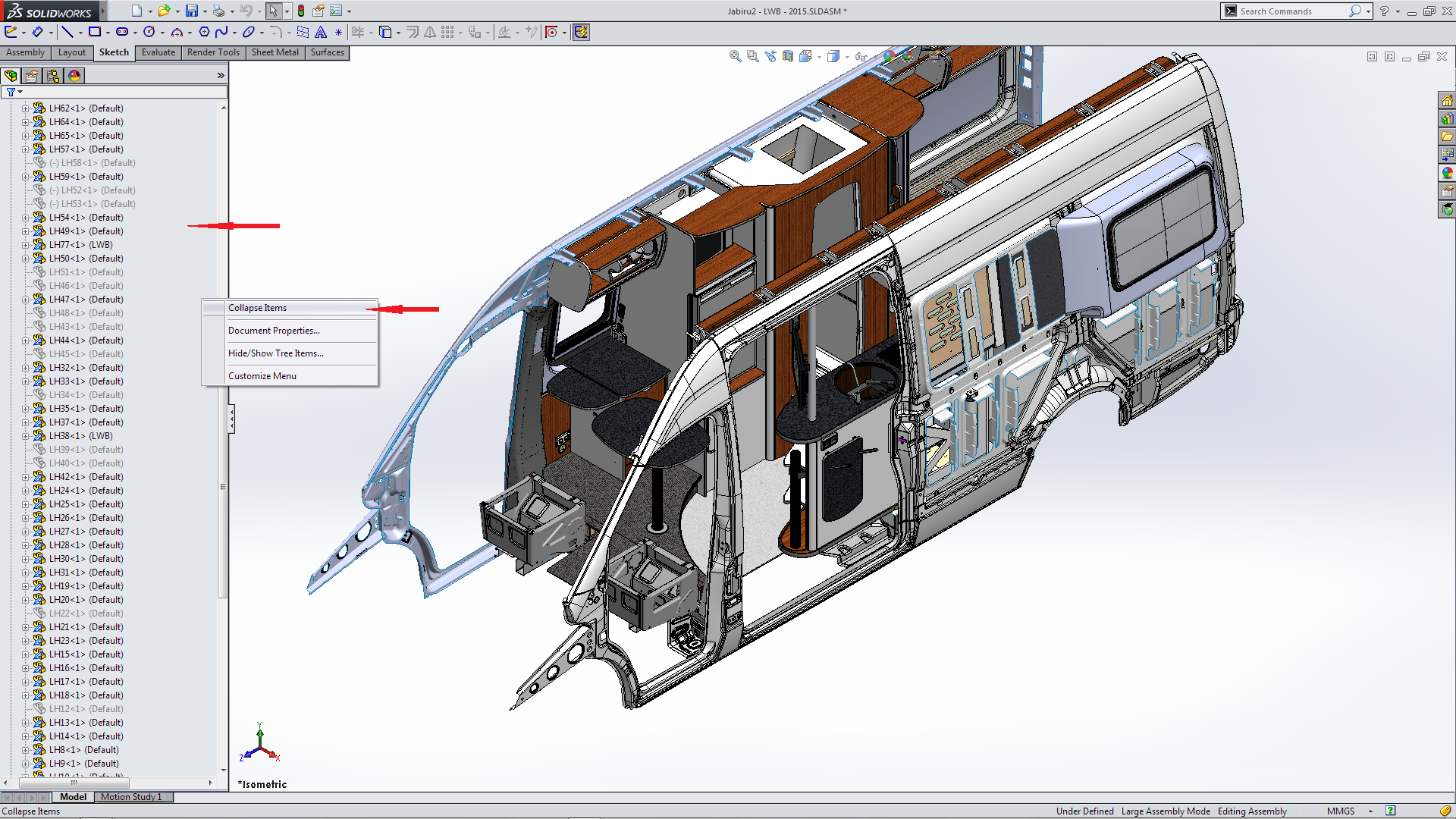 Need to collapse that expanded Feature Tree! You could RMB in the Feature Tree and select Collapse. Or you could just Shift+C