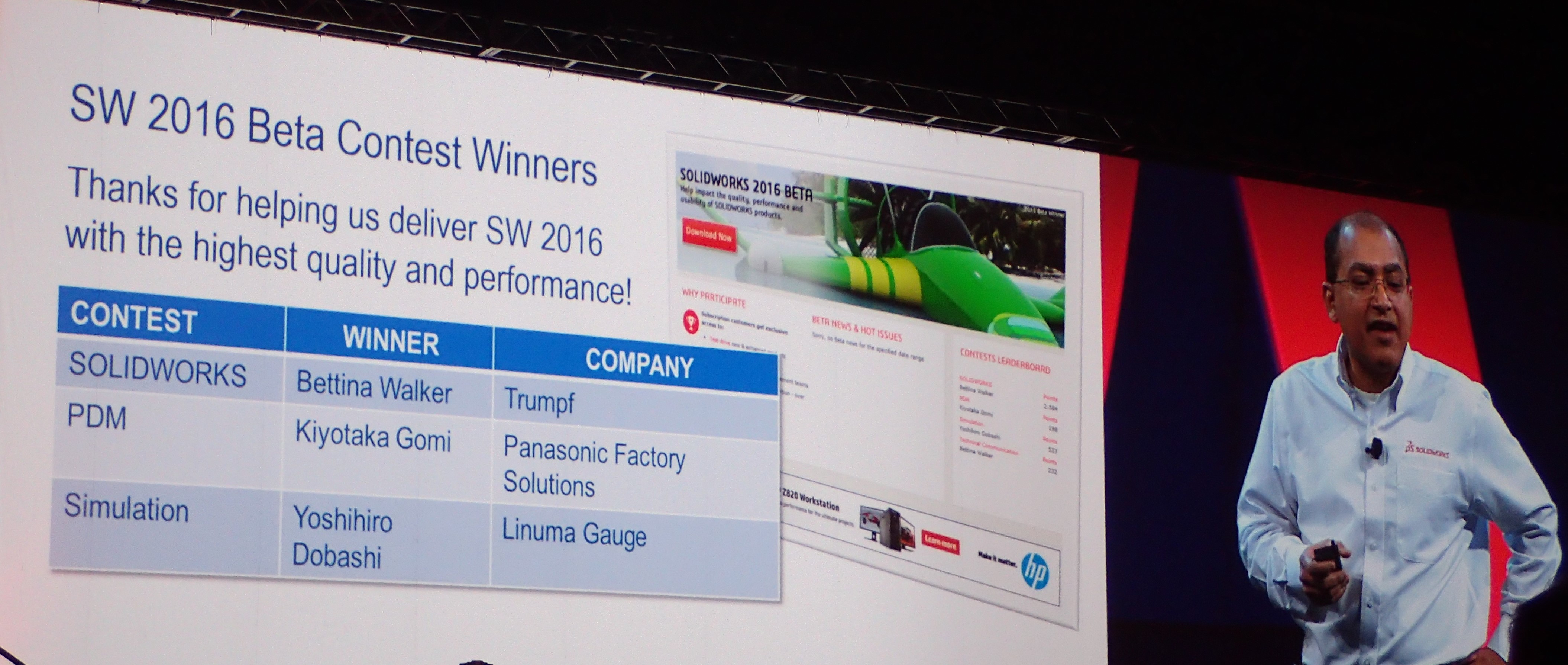 Kishore introduces the SOLIDWORKS 2016 – Beta Contest Winners