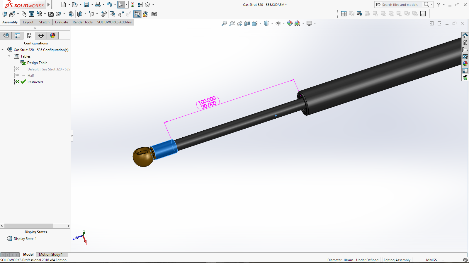 There was an interesting topic raised the other week on the SOLIDWORKS Forum. The question related to configurations with the use of Limit Mates. To be honest I’ve never had the need or thought to add a configuration to a Limit Mate. Almost by definition the use of a Limit Mate is to retain the movement at the “limits”! So things that have a known limited movement, hinges, actuators, drawer runner and the like.