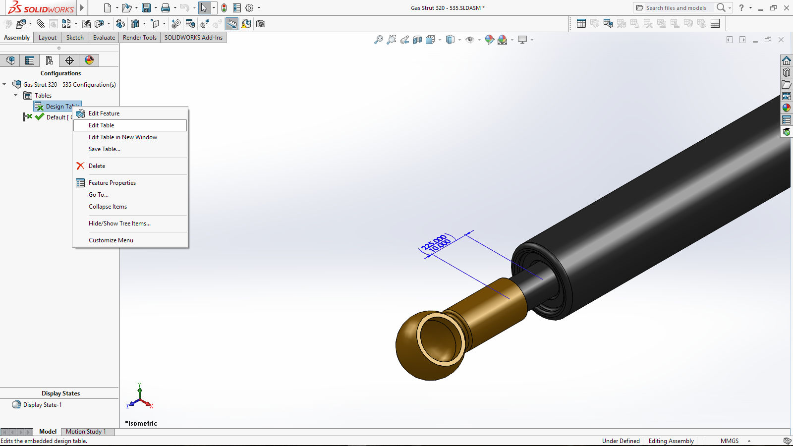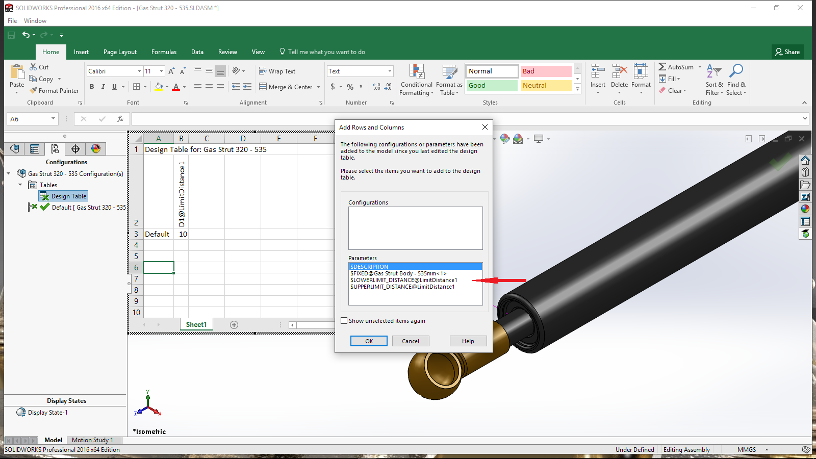 Select the “LimitDistance1” and close the Design Table. If you now RMB on the Design Table and select Edit Table