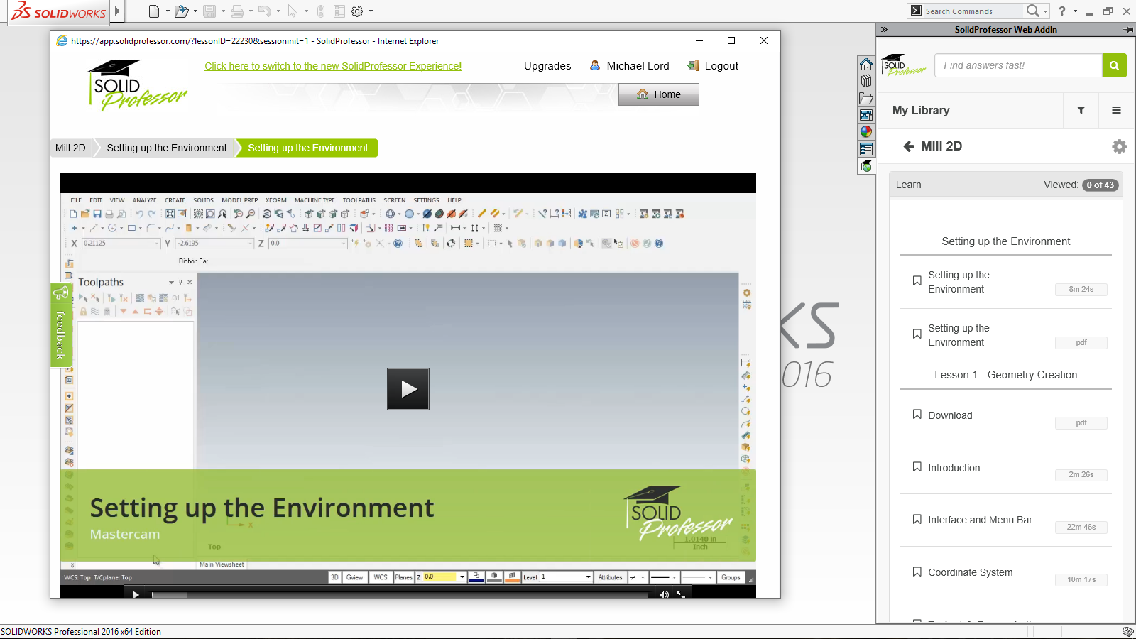 Access to all of the lesson are available via SolidProfessor website or within SOLIDWORKS, via the SolidProfessor Task Pane Add In,