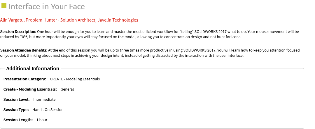 Tough choice first up after lunch! You wouldn’t think you could get better than SOLIDWORKS Redneck Workarounds – Creative solutions to everyday problems – Josh Altergott – Adrian Fanjoy. But I do like Interface in Your Face – Alin Vargatu (Hands-On). Although I do believe it should have been written .. Interface …. IN YOUR FACE!
