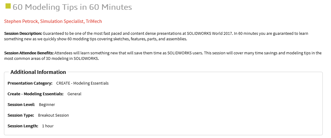 Well that’s just one way to select Technical Sessions at SOLIDWORKS World 2017. Looking back over them …. you could do worse.
