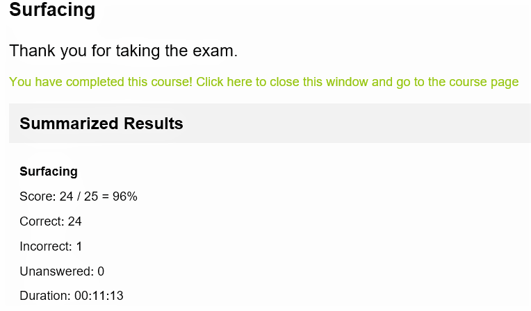 On completion of the exam you receive immediate feedback. Results are shown with the number of correct & incorrect answers. Along with the time taken. My initial reaction was to think that it would be nice to know what questions that I got incorrect! I soon noticed that an email had been sent to the registered address. There is an option to have the emails send to additional addresses. The email shows all of the questions with your answers which are shown as correct or incorrect. It appears I should have paid more attention in Ruled Surface!