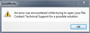 “An error was encountered while trying to open your file. Contact Technical Support for a possible solution”