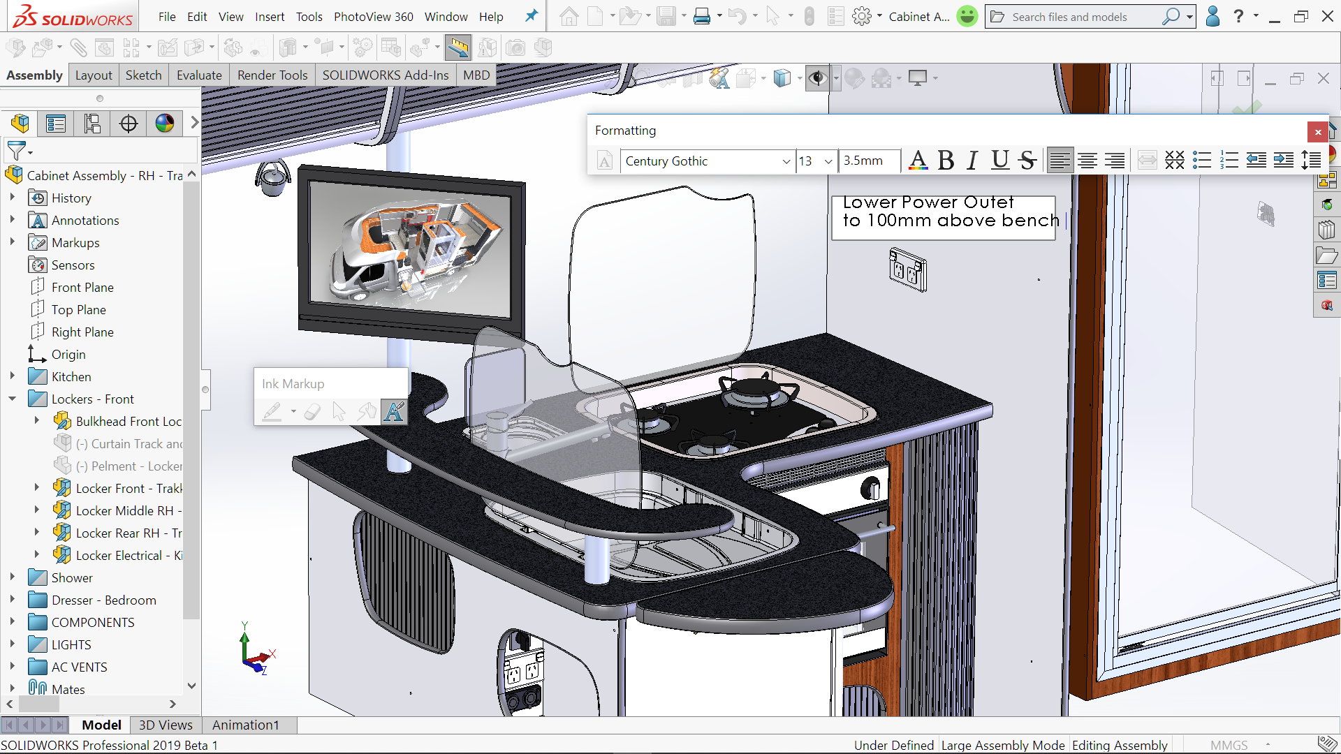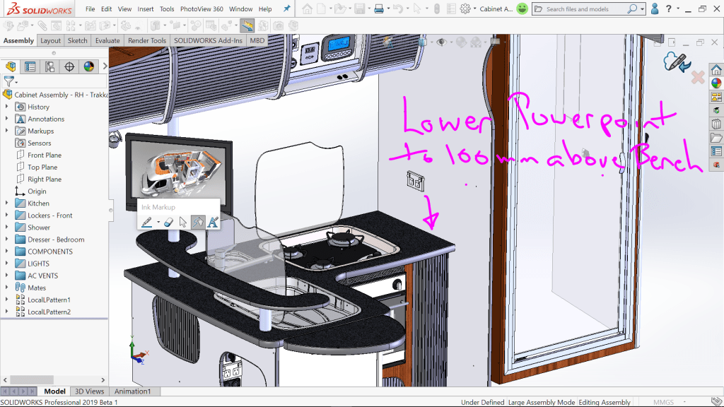 The ability to add notes direct in the SOLIDWORKS component is a significant feature added to SOLIDWORKS 2019. Considering the ever-increasing range of touch screens and now this hand writing ability. The ability to add Markups direct into the model is set to change how designs are reviewed and notations are communicated.