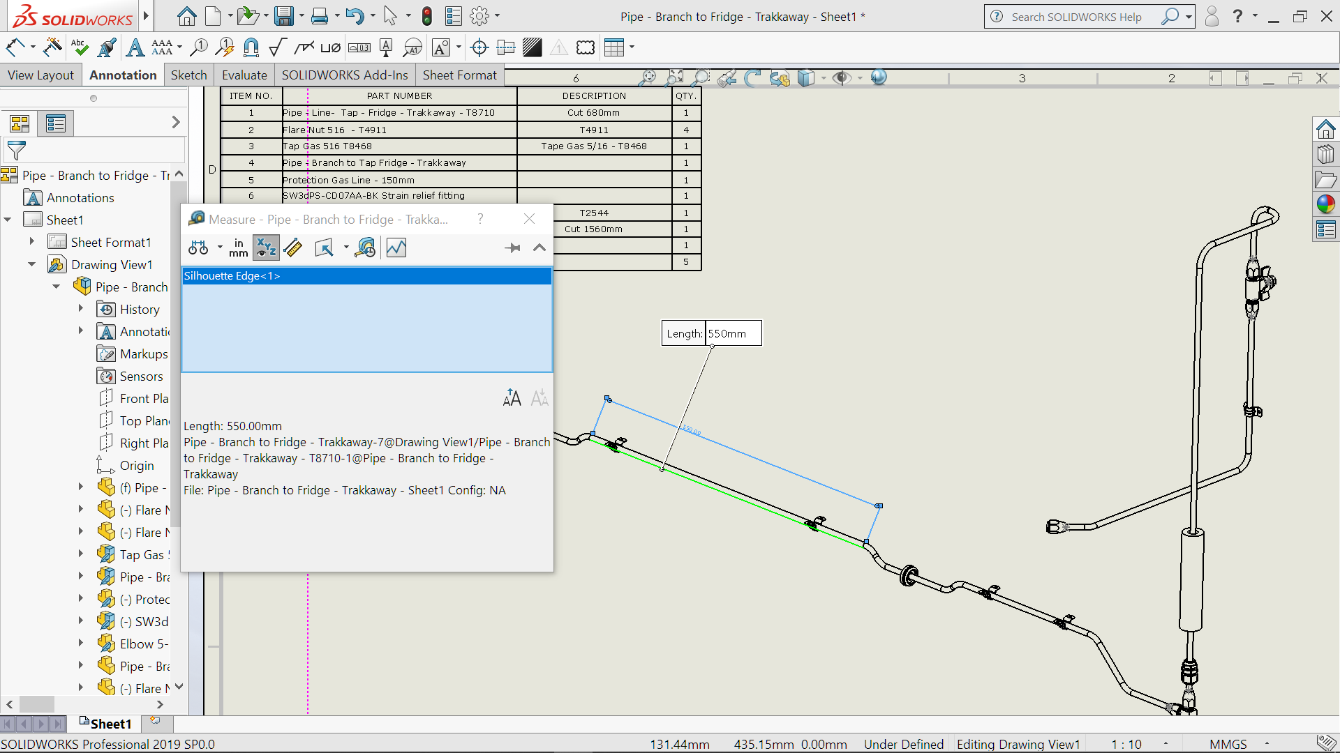 SOLIDWORKS 2019 see’s a small but significant enhancement to the Measure tool. The measure tool is now available for all SOLIDWORKS tools and can be used with parts, assemblies, and drawing files. More importantly is that it is now available even while other tools are active.