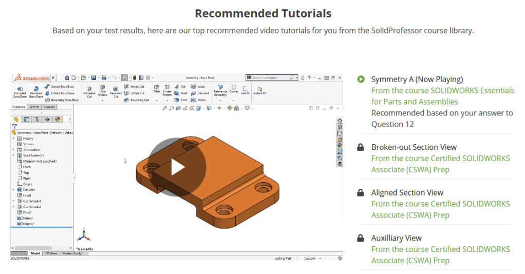 SolidProfessor has recently added the SolidProfessor SOLIDWORKS Skills Analyzer to give you a guide, to your skill base and a recommend learning path, to your missing skills!