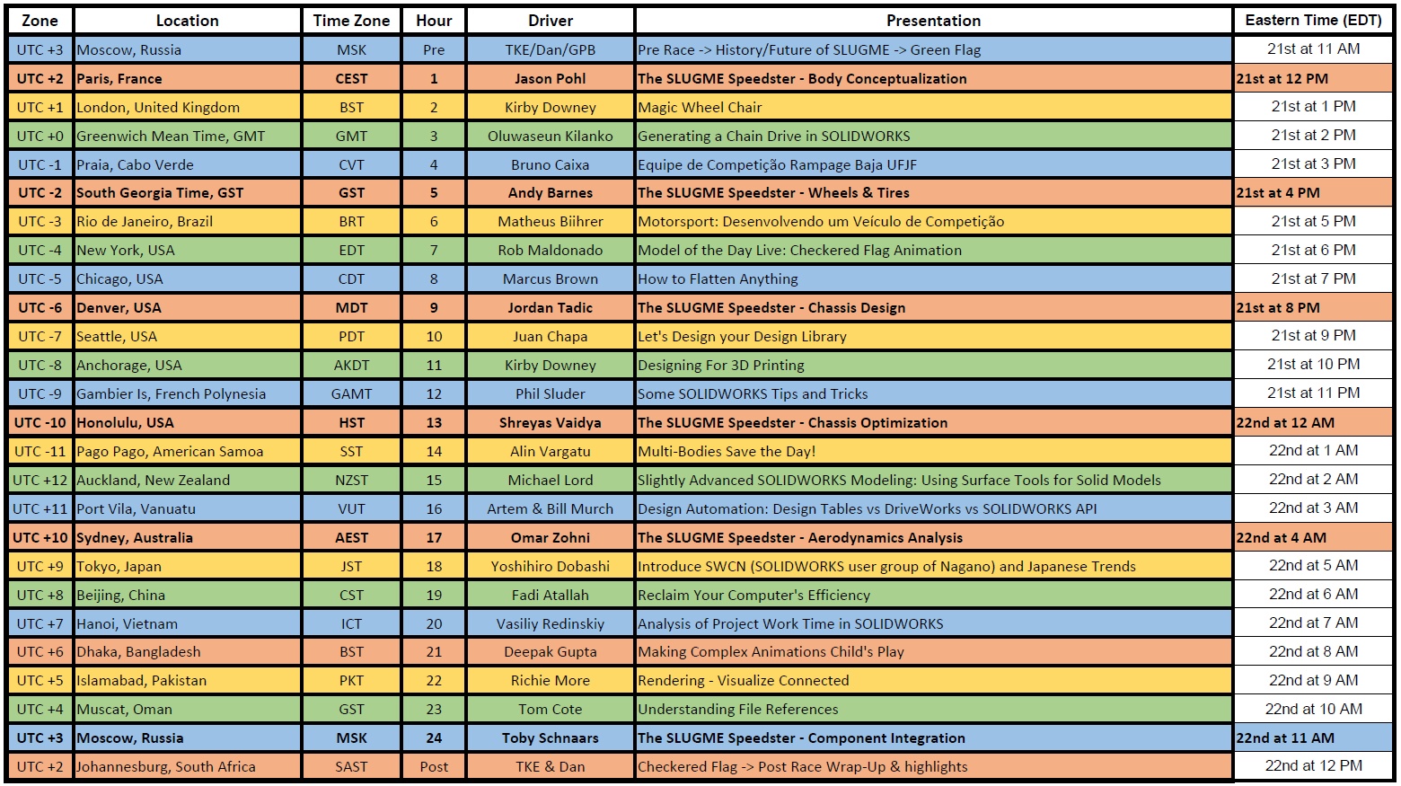 There are going to be some great presenters, the who’s who of the SOLIDWORKS world! The full roaster of Crew Chiefs and Drivers (see the Le Mans theme) are still to be finalised but I see Jordan Tadic, Toby Schnaars (Too Tall Toby), Artem Taturevych (Xarial), Kirby Downey (The CORE Podcast), Jason Pohl (who you might know from a little television program called American Chopper)