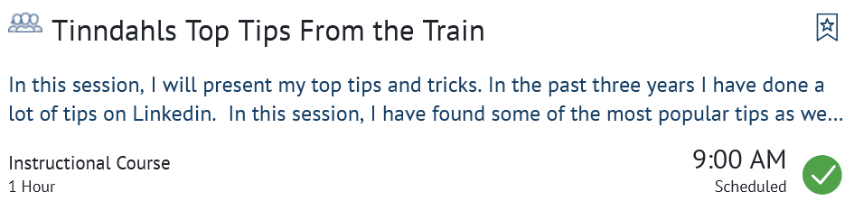 There has always been good presentation on Tips & Tricks at World. This one looks to be up there with the best of them. I’m curious to see how Lennart brings the motion of the train to this session .. 🙂