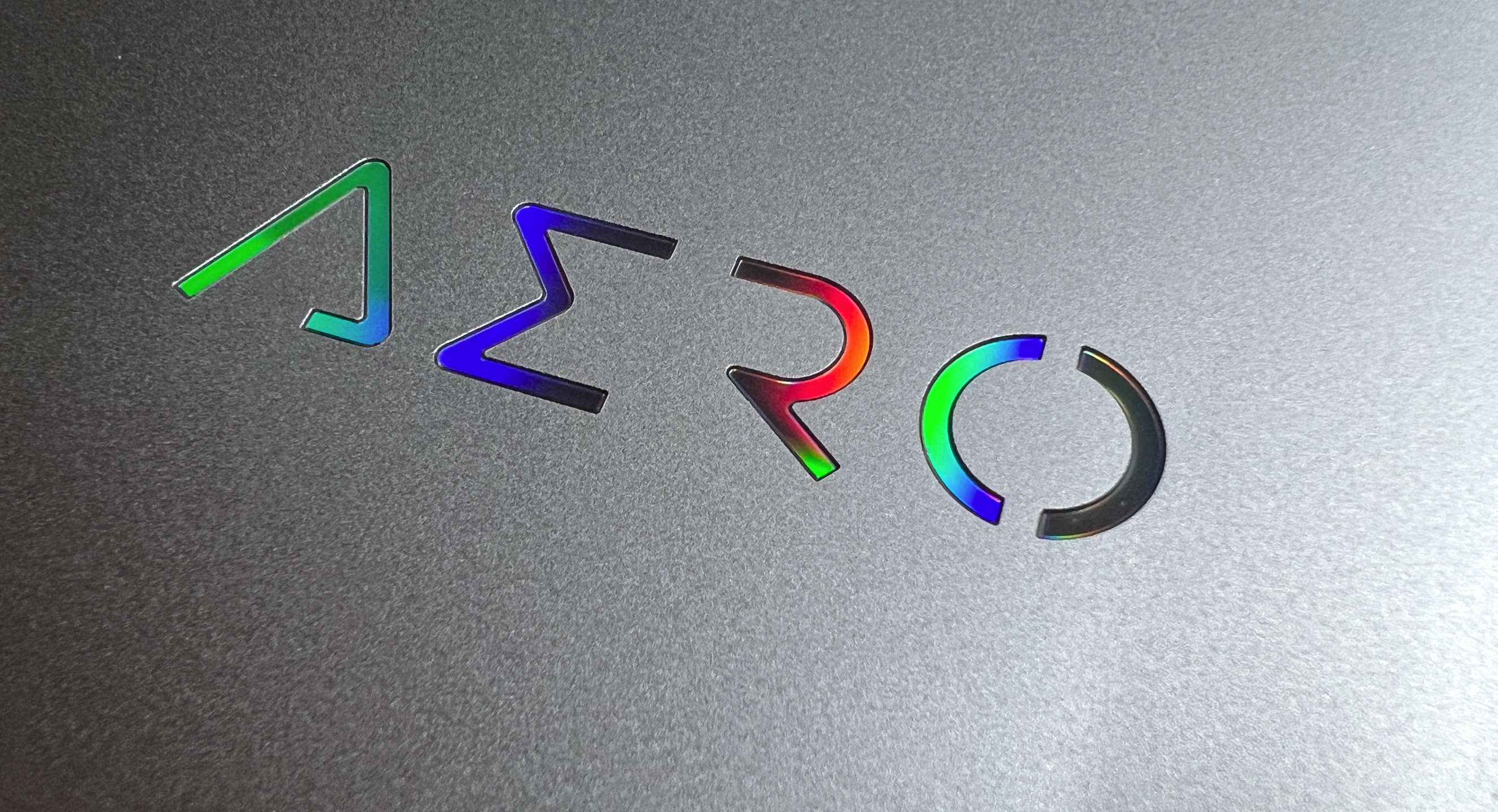 What catches your eye is when the AERO logo is not illuminated, and when viewed in certain light at different angles it displays a changing range of iridescent colours.