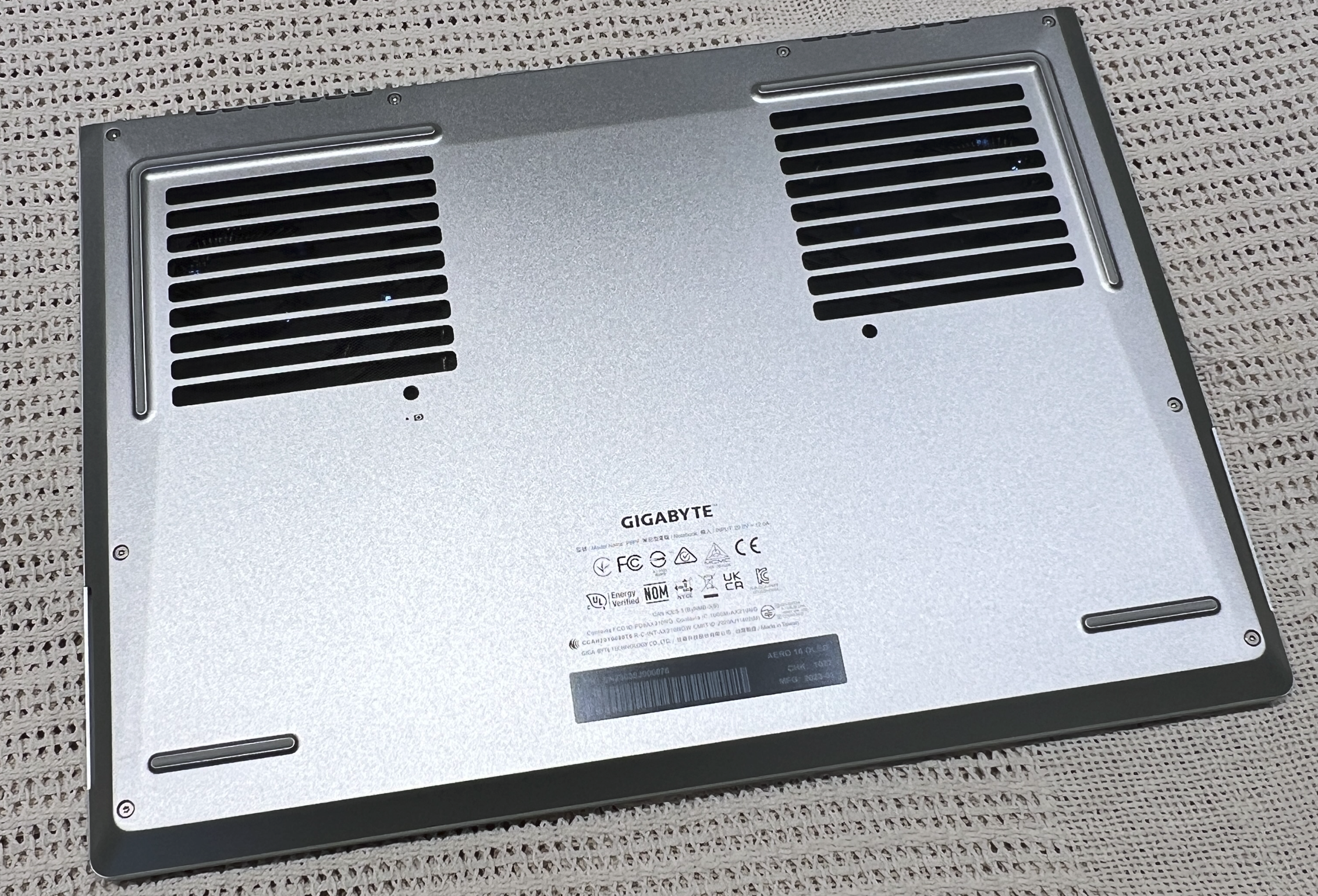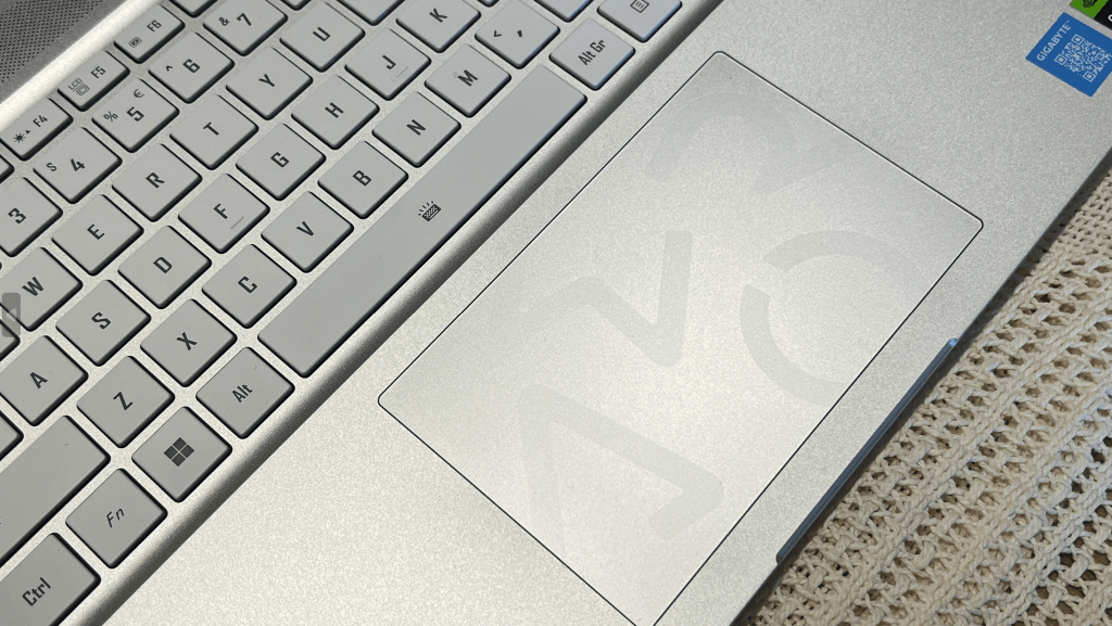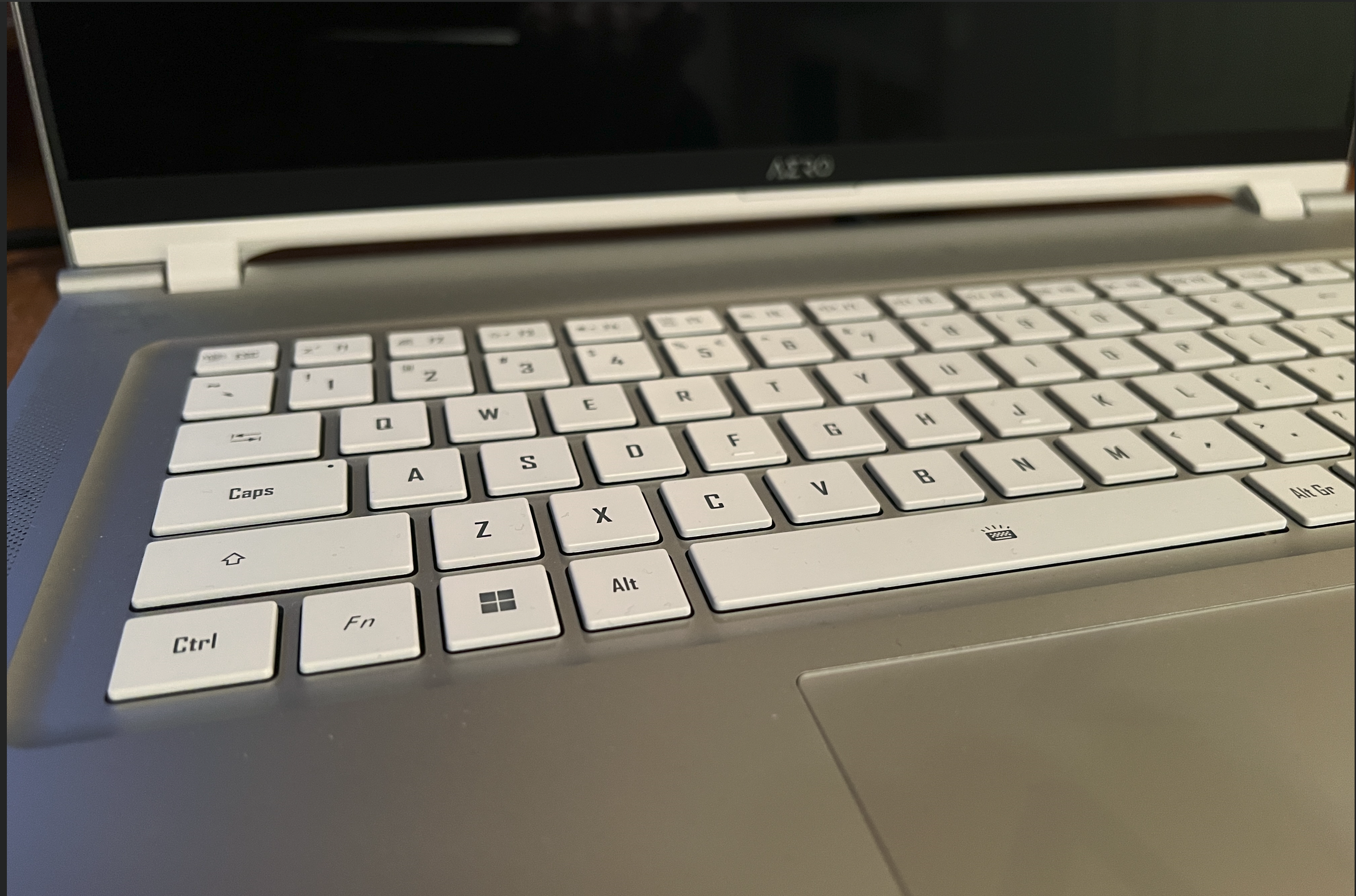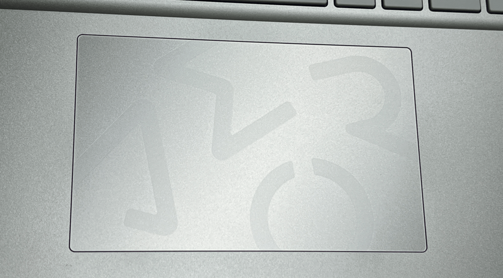 There are a couple of other clever trick of the light details that the AERO 16 uses. One is on the touch pad. When viewed sitting directly in front of it, it has the same metallic silver tone as the rest of the computer. But when viewed at the right angle with the right lighting it displays a laser etched AERO logo.
