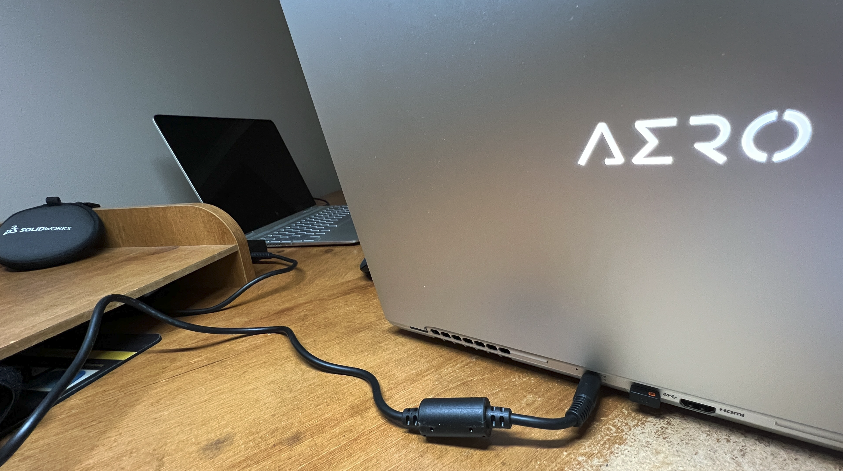 I am fortunate that I have a good contact, when it comes to computers and now works at Com1 International. So I reach out and ask could I borrow something for the event. They know what I do, so I didn’t request anything in directly but looking through the range of product I was hoping for one in particular! Well they must have read my mind when they said they were sending me the new 2023 model Gigabyte AERO 16 OLED Laptop. In their own words Gigabyte is promoting the laptop as – “The AERO 16 OLED creator laptop is designed for professionals, designers, and creators.” and shows that it has done compatibility testing for creative & design software including SOLIDWORKS.