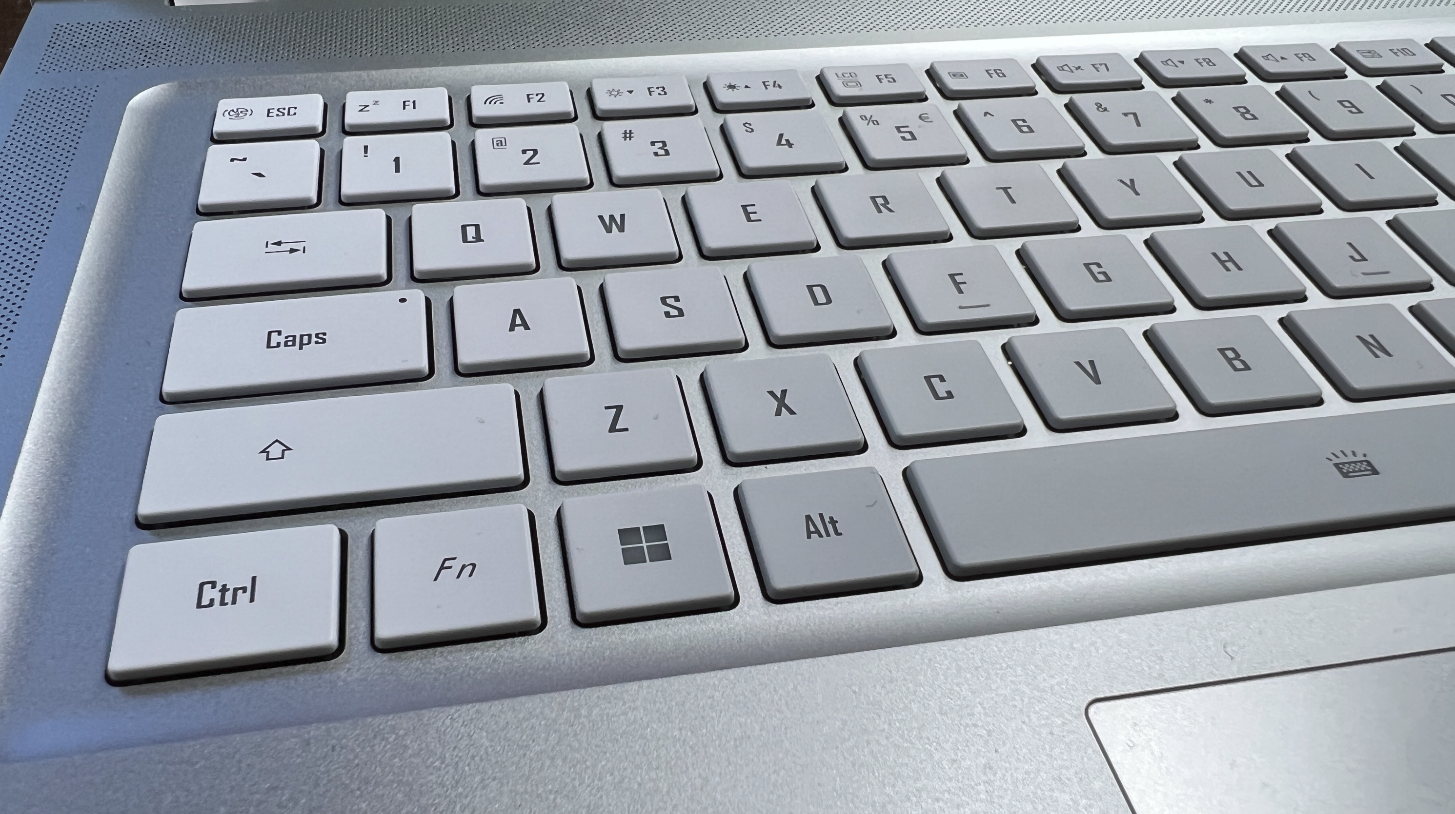 Although the keyboard is listed as white in colour, there are so many times, especially under lower light it blends to similar grey tones as the rest of the face of the laptop.