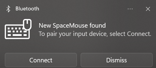 3dconnexion also provides three options on how to connect the SpaceMouse Pro Wireless BlueTooth Edition to your computer. There is a USB-A (computer) to USB-C (SpaceMouse) cable which provides both connection & charging. There is connection via wireless using a provided Universal Receiver.