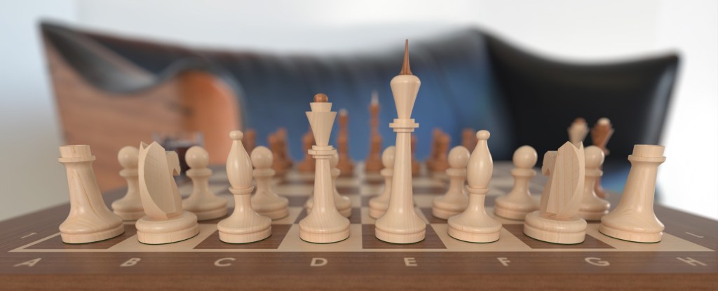 In this image I’ve used a ultra-widescreen aspect and Depth of Field to concentrate the view to all of the white pieces.